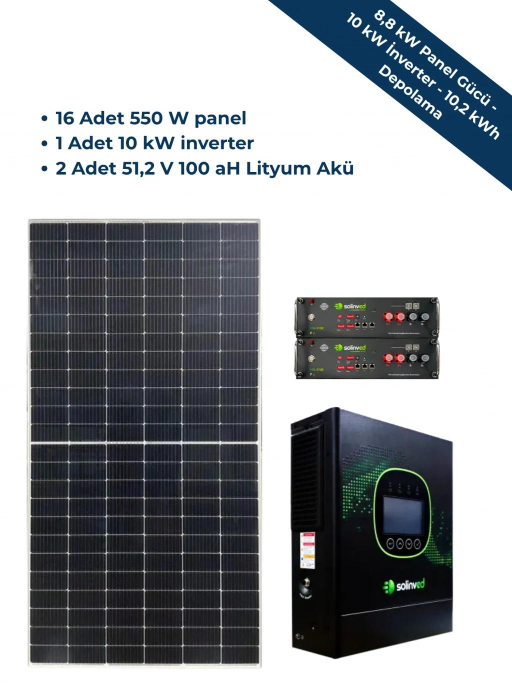 VİLLA PAKETİ ( 8,8 kW Panel Gücü - 10 kW İnverter - 10,2 kWh Depolama)